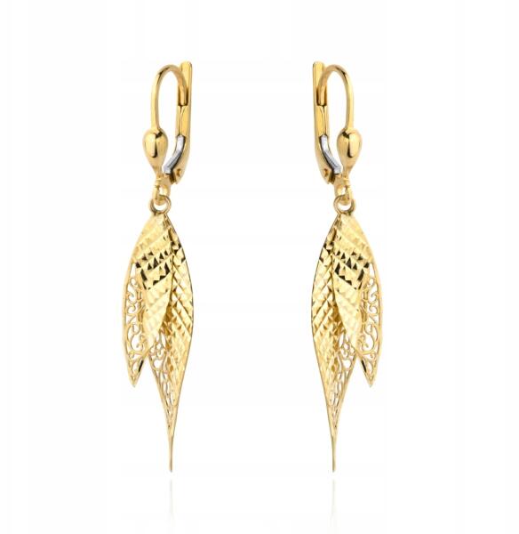 Lovrin Arany fülbevaló 585 14k gyémántcsiszolt cseppek 2.45g hosszú áttört (62259818)ALLEGRO