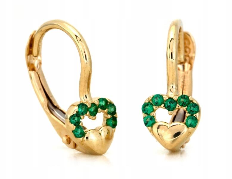 Lovrin Arany fülbevaló 585 14kt angol kapcsos zöld cirkónia köves szívecskék 1.10g (45936758)ALLEGRO