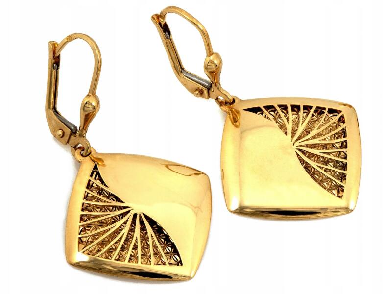 Lovrin Arany fülbevaló 585 14kt áttört mintás felfújható négyzetek angol kapcsos 3.50g (Lovrin)ALLEGRO