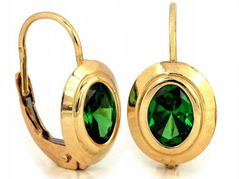 Lovrin Arany fülbevaló 585 angol kapcsos, zöld kővel, arany foglalatban, 2.45gALLEGRO