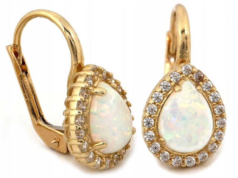 Lovrin Arany fülbevaló 585 fehér opállal és cirkónia kövekkel, csepp alakú, angol kapcsosALLEGRO