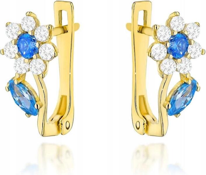 Lovrin Arany fülbevaló 585 kék cirkónia virágokkal, angol kapcsos (Lovrin)ALLEGRO