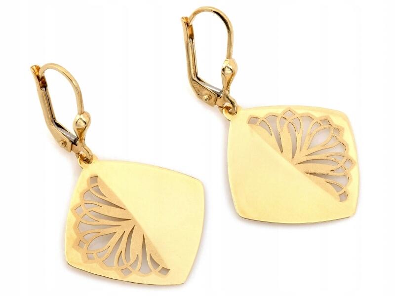 Lovrin Arany fülbevaló 585, lógó négyzetek áttört mintával, angol kapcsosALLEGRO