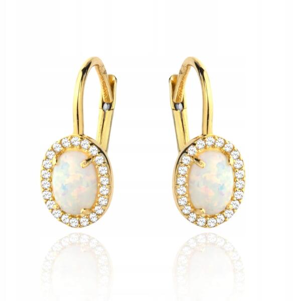 Lovrin Arany fülbevaló 585 opállal, ovális, cirkóniákkal körülvéve, 2, 46g, markíz fazon, divatos (59626891)ALLEGRO