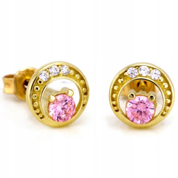 Lovrin Arany fülbevaló 585 rózsaszín cirkónia kővel, divatos mintával ajándékötlet nőknek (Lovrin 62945)ALLEGRO