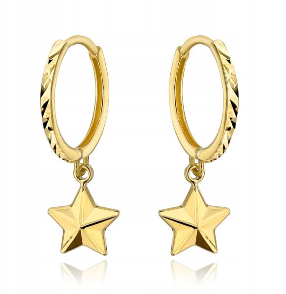 Lovrin Arany karika fülbevaló 585 függő, gyémántcsiszolású csillaggal, ajándékba, 14k (58719287)ALLEGRO