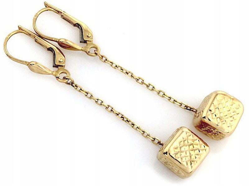 Lovrin Arany női lógós fülbevaló 585 3D kockák hosszú láncon, angol kapcsos (Lovrin 14927)ALLEGRO