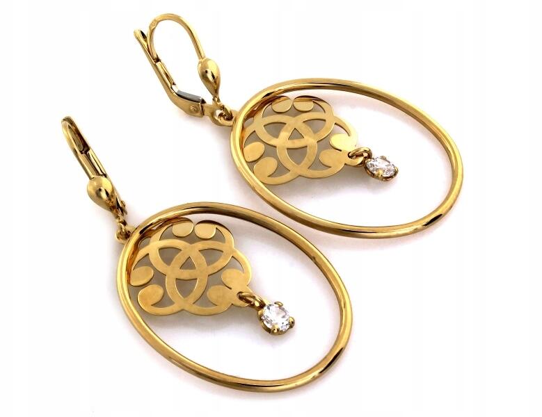 Lovrin Elegáns, 585-ös arany fülbevaló, függő, áttört mintával és cirkónia kövekkel, angol kapcsos, divatosALLEGRO
