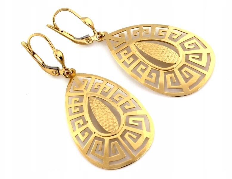 Lovrin Elegáns, 585-ös arany fülbevaló, látványos, görög mintás, ajándékALLEGRO