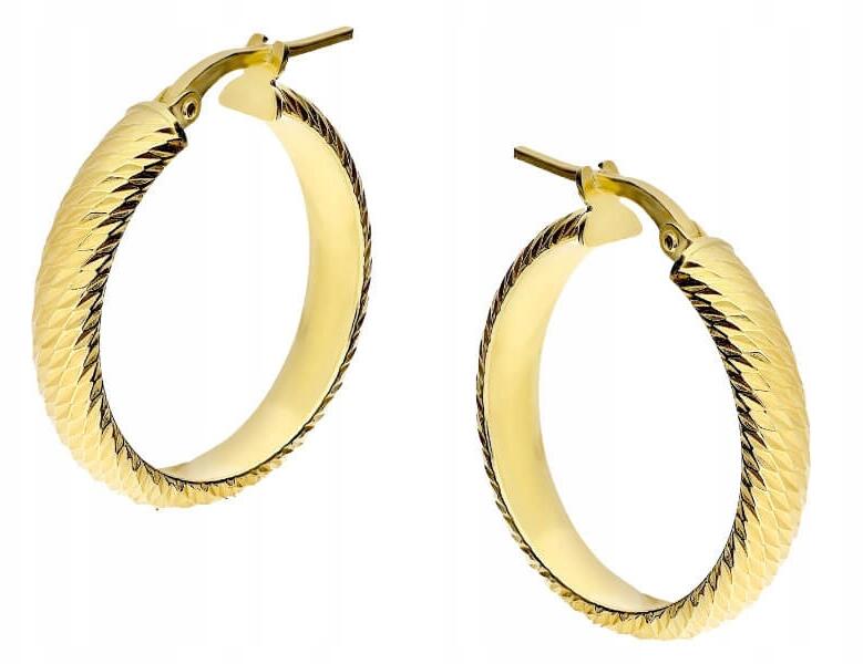 Lovrin Ezüst 925 aranyozott széles karika fülbevaló, díszített, angol kapcsos, ajándékALLEGRO