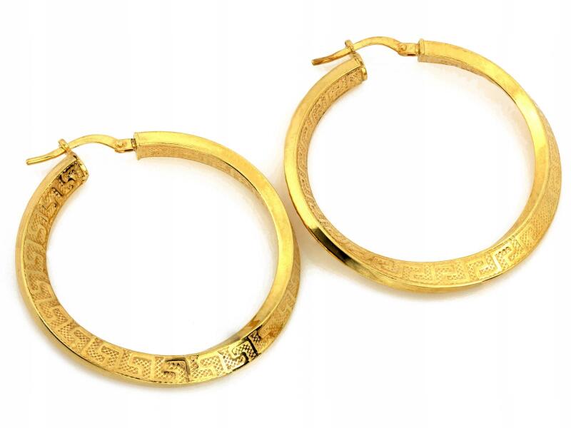 Lovrin Ezüst fülbevaló 925 aranyozott széles karika görög mintával 5.62g ajándékALLEGRO