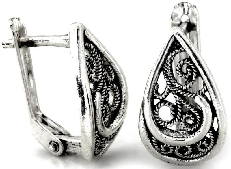 Lovrin Ezüst fülbevaló 925 áttört mintás csepp alakú, stílusos díszítéssel, nőknek (Lovrin 67060)ALLEGRO