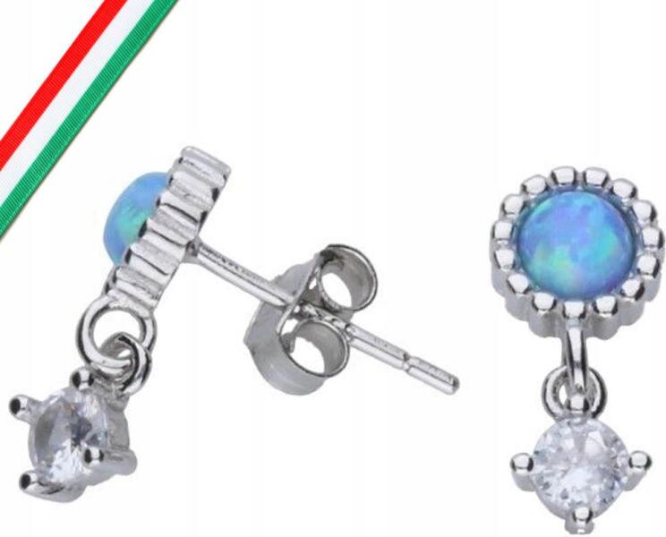 Lovrin Ezüst fülbevaló 925 karika kék opállal és cirkóniákkal ajándékba (Lovrin)ALLEGRO