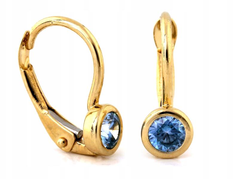 Lovrin Finom, 585-ös arany fülbevaló kék cirkóniával, 1, 26g, angol kapcsos