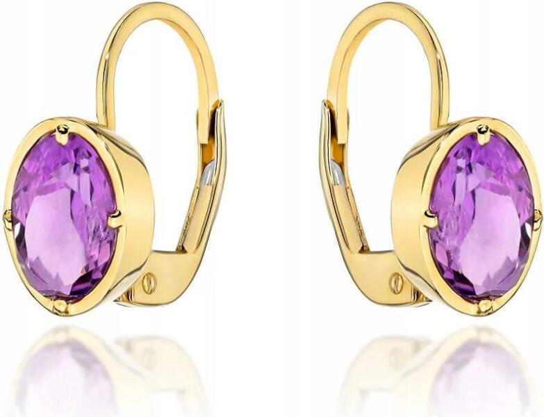 Lovrin Női arany fülbevaló 585 "colorful Stone" kollekcióból ametiszt ovális 14k (stock_523184)ALLEGRO