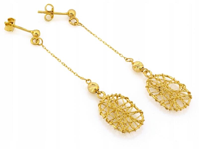 Lovrin Női arany fülbevaló 585 hosszú láncokkal, áttört ovális díszítéssel 14KALLEGRO