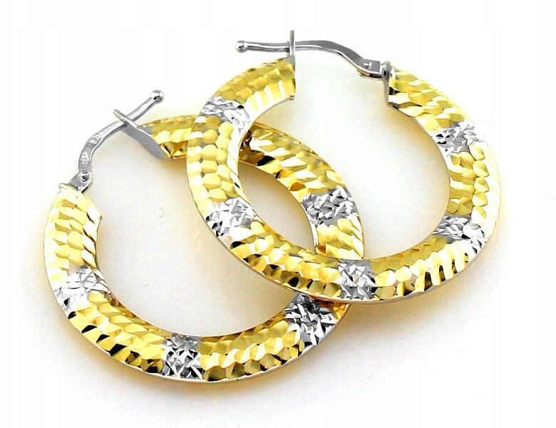 Modern arany kétszínű, briliánsozott karika fülbevaló 585-ös, angol kapcsos, 14 karátosALLEGRO