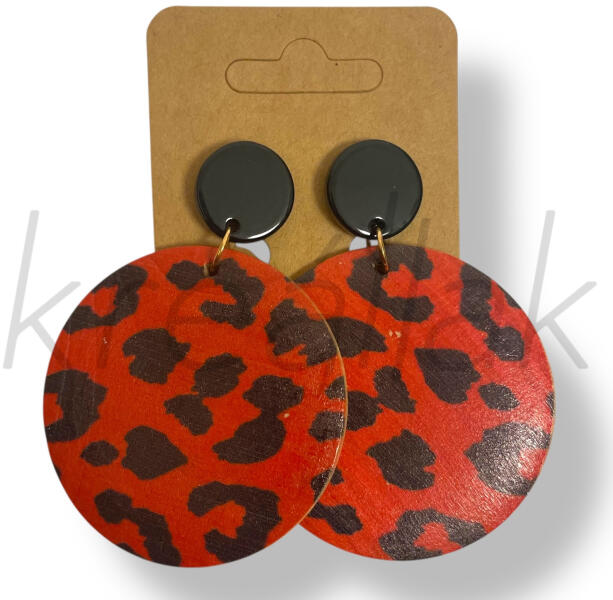 Piros párduc mintás fa fülbevaló