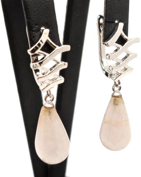 **Fülbevaló csepp rutilkvarc hullám záras 10x20mm – Kézzel készített természetes ásvány fülbevaló**