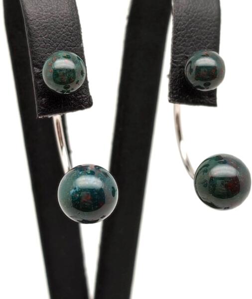 --- ### Termék részletei - **Típus:** Fülbevalók - **Ásvány típusa:** heliotróp (valódi ásvány, természetes színárnyalatokkal) - **Gyöngyméret:** Természetes, sima felületű gyöngyök - **Foglalat:** Rozsdamentes acél karmos rögzítés - **Készítési technika:** Kézzel készült, precíz kivitelezéssel - **Felhasználás:** Mindennapi viselethez és különleges alkalmakra is ideális