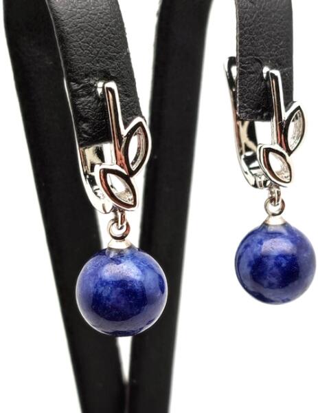 **Fülbevaló gyöngy kvarc szinezett kék levél zárt 10mm – Kézzel készített természetes ásvány fülbevaló**