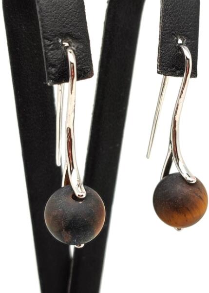 Paraméterek, termékleírás - R. M. ékszer Fülbevaló golyó tigrisszem matt ívelt lógós 10mm (088441)
