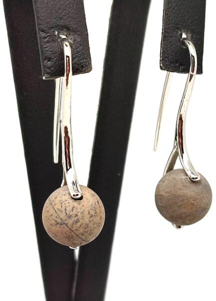 Paraméterek, termékleírás - R. M. ékszer Fülbevaló matt golyó jáspis artic ívelt lógó 10-11mm (088468)