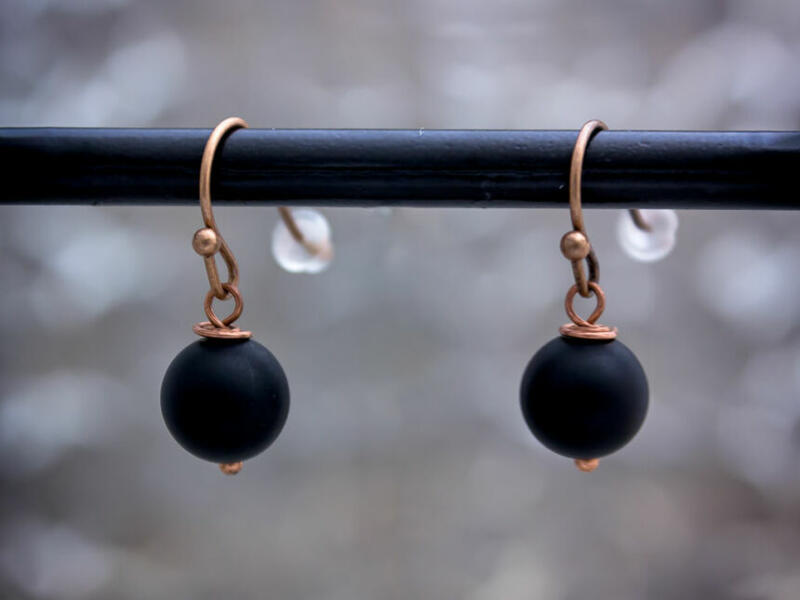 Galéria - R. M. ékszer Matt ónix lógós réz drót fülbevaló 8mm (18776RM)