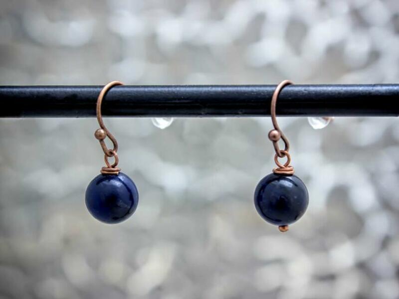 Paraméterek, termékleírás - R. M. ékszer Szodalit lógós réz drót fülbevaló 8mm (19031RM)