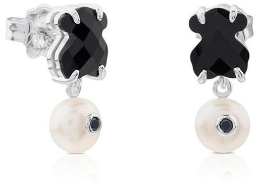 Tous Ezüst lógó fülbevaló ónixszal és gyöngyökkel Erma 1000136700