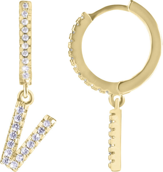 Troli Karika aranyozott single "V" fülbevaló cirkónium kővel - 1 db