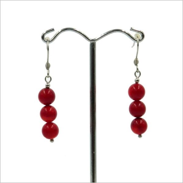 8mm-es kerek vörös korall gyöngyből készítettem fülbevalót. A fülbevaló akasztója hátul nyitott, orvosi acél.