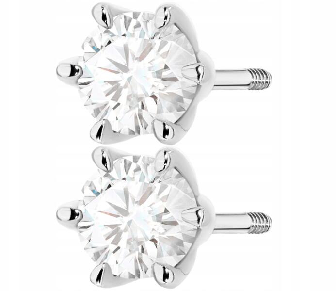 ZŁOCISTO Fülbevaló Fehér Arany 585 Gyémánt Lab Stift Csavarható Ajándék (DLA DZIEWCZYNY NARZECZONEJ)